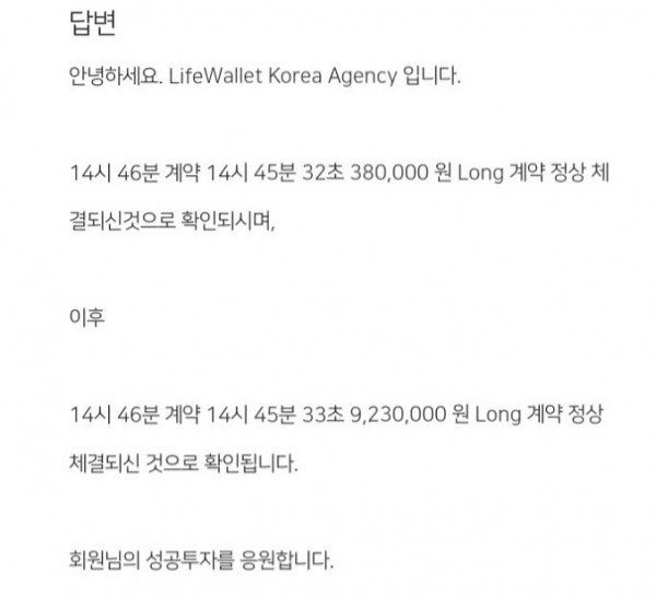그럼 거래시간 알려달라고 하니 1초 차이로 담보금 전액이 거래되었다고 하네요.