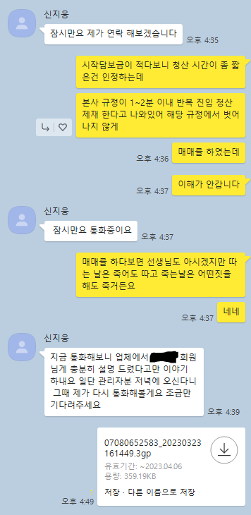 첫입금 10% 3일 출금 제한 들먹이길래 의심스러워서 손실나면 어쩔수 없지만 수익나면 바로 출금해보고 싶다고 지원금 안받고 매매를 했습니다. 초반에 꼬여서 손실만 나다가 수익 나서 출금요청 하니 출금장에 문제가 있어 해결하고 다음날 출금해준다고 하였고 어쩔수 없이 기다렸고 다음날이 되어서 출금 신청을 하니 본사랑 매매 패턴이 맞지 않아서 출금을 해줄수가 없다고 하면서 계정 잠구고 카톡이고 전화고 싹 차단입니다. 입금계좌도 올리고 싶은데 올려도되는지 모르겠고 분해 죽겠습니다.