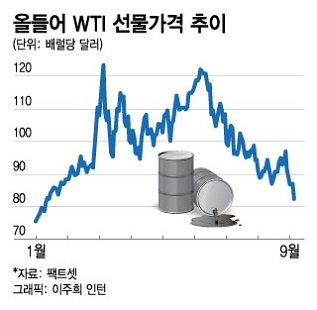 WTI 선물가격은 러시아가 우크라이나를 침공한 뒤 지난 3월초 배럴당 120달러를 돌파했으나 그 때 고점 대비 34% 급락한 상태다.